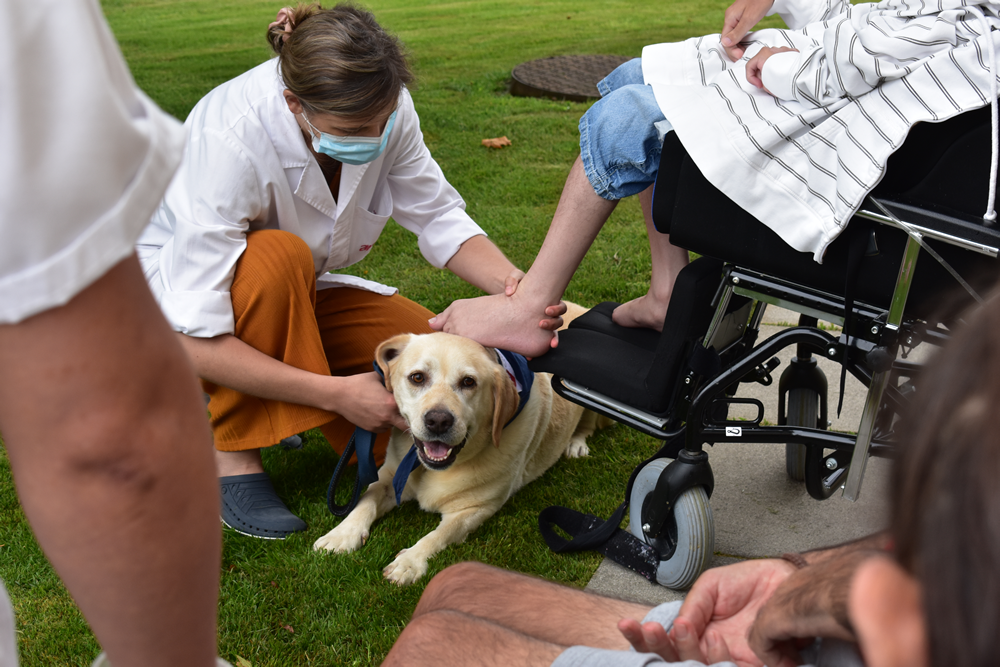 A Alice não quis descalçar-se. É o Olivério quem tem a honra de abrir a sessão e, de pés descalços, faz festinhas à Mel, uma das protagonistas deste projeto em atividade desde 2016. Mais serena que o Lord, o outro Dr. Cão labrador, é a indicada para o objetivo desta sessão: estar calminha enquanto os participantes a acariciavam com os pés. “O Lord é muito mais efusivo e mais ativo do que ela. E quando eu quero uma sessão mais dinâmica em que é necessário trabalhar outras coisas, posso optar pelo outro cão, depende sempre daquilo que queremos trabalhar”, elucida a enfermeira de reabilitação.
