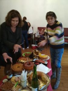 A mesa estava recheada. As participantes nas sessões de grupo do projeto “Nós, os cuidadores” decidiram confecionar algumas iguarias e contribuir para o lanche que junta as cuidadoras dos diferentes grupos deste projeto num convívio informal. É preciso destacar o folar transmontano da dona Adelaide, o pudim ao jeito de Abade de Priscos da dona Maria de Fátima (ah, também os deliciosos bolinhos de bacalhau) e o bolo da Bimbi da dona Alexandra.